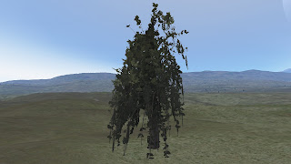 The parameters offer a great deal of control over the primary visual characteristics of the tree and as they helpfully provide a detailed description of the algorithm and exemplar parameters for four types of tree it's reasonably straightforward to implement and get something usable out of it - an achievement not all published papers manage in my experience. To speed up development however I decided not to implement the entire system in C++ but instead use the Lua scripting language that I had previously integrated to facilitate procedural architecture generation (which I plan to post about in the future). The core algorithm from their paper is written in Lua which generates a representation of the final tree from it's parameters, there is a shared common file that implements the guts of the code and a separate much smaller file per tree type that pretty much declares the parameters for the tree in a Lua table then makes a few function calls into the common code passing those tables as parameters.