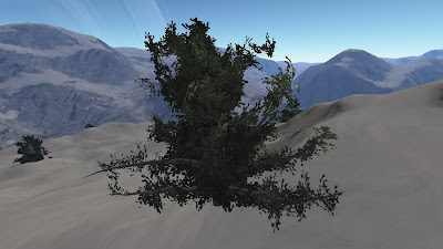 This is one of the areas I've spent more time on as it's central to getting pretty much anything tree like on screen. Of course I could simply gone out to TurboSquid or similar and picked up some tree meshes that I could have plonked down on the terrain but that wouldn't really be holding true to the whole procedural ethos - it also wouldn't have been very interesting.